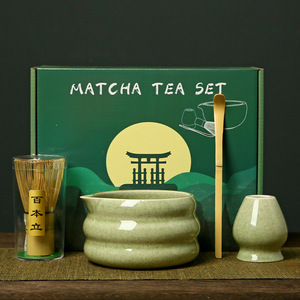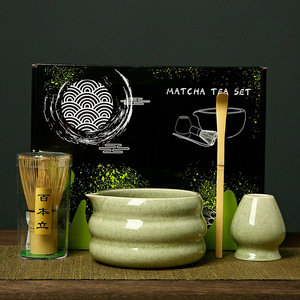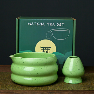 凸纹碗绿色沙点抹茶碗四件套+月彩盒