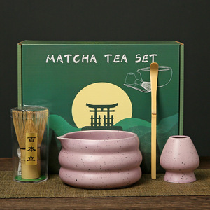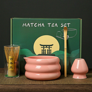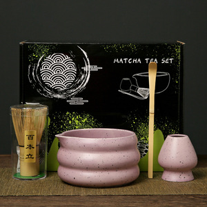 凸纹碗粉色沙点抹茶碗四件套+月彩盒