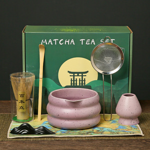 凸纹碗紫色沙点抹茶碗+茶筅立+月彩盒