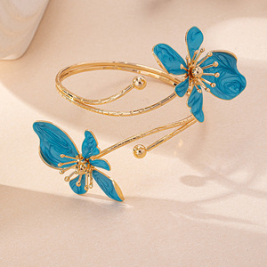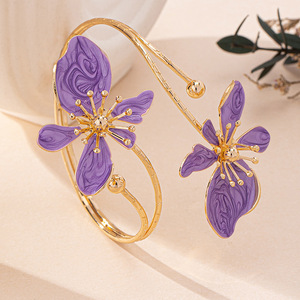 欧美跨境设计滴釉花朵简约复古立体花朵手镯