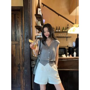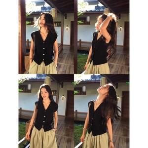 pusumede时髦腔调|黑色v领无袖针织马甲背心女气质坎肩开衫上衣