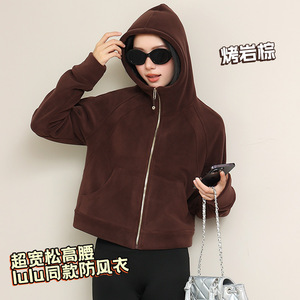 2025秋冬新款奥利绒外套高腰宽松大牌平替拉链防风衣百搭卫衣连帽