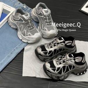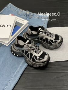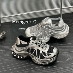 2025新款网红老爹鞋女鞋做旧液态银透气跑步鞋