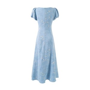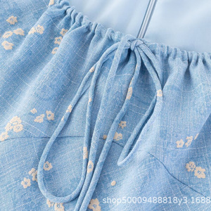 2025夏季新款法式气质U领系带中长款短袖连衣裙修身收腰长裙子