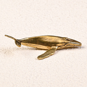 黄铜实心鲸鱼摆件 装饰桌面纯铜招财海洋动物鲸鱼铜摆件小铜器
