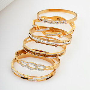 欧美新款几何黑白长条滴釉钛钢手环个性镂空轻奢不掉色手镯女饰品