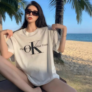 欧美潮牌夏季新款家字母印花+刺绣休闲宽松百搭男女短袖