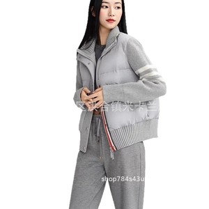 羽绒服女2025年冬季新款韩版宽松加厚拼接三条杠立领白鸭绒外套