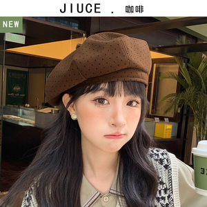 秋冬季波点磨毛贝雷帽时尚韩系百搭小圆点可爱减龄女生早秋南瓜帽