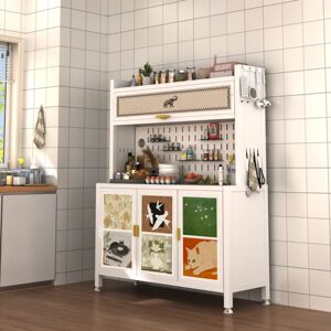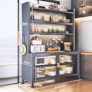 中古风餐边柜靠墙一体落地置物架储物柜子铁艺厨房复古橱柜置物柜