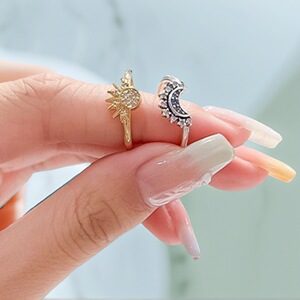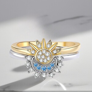 欧美跨境个性简约设计感日月同辉叠戴戒指女镶钻太阳月亮情侣对戒