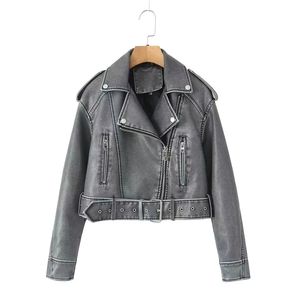 2025欧美跨境亚马逊爆款街头复古翻领宽松水洗仿皮机车服外套夹克