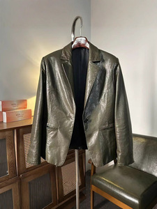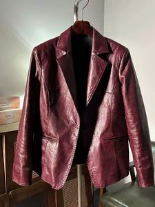 2025新款真皮皮衣女油蜡羊皮西装外套时尚百搭休闲宽松显瘦皮夹克