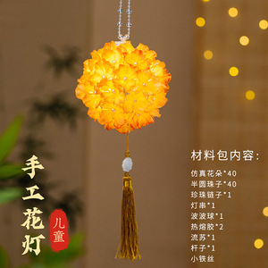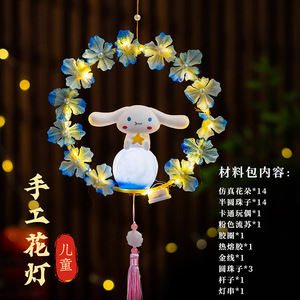 中秋节灯笼儿童手工diy 古风手提发光兔子花灯国风汉服璎珞小灯笼