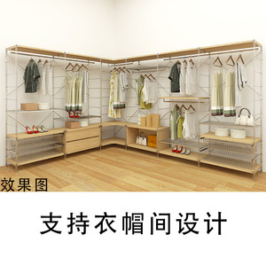 开放式衣柜中古风挂衣架卧室落地步入式衣帽间架子组装衣服置物架