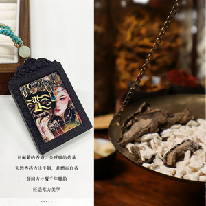 藏式手绘描金扎基前世今生唐卡挂脖天然合香牌招财好运吊坠批发