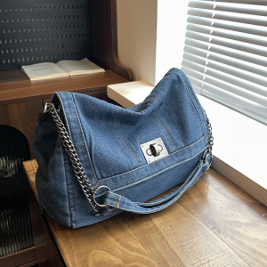 牛仔布包包女2025春夏新款时尚链条包大容量托特包单肩斜挎包跨境