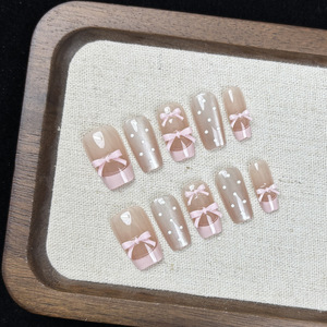 半手工纯欲甜美少女风粉色芭蕾法式猫眼穿戴甲10片美甲贴片爆款
