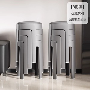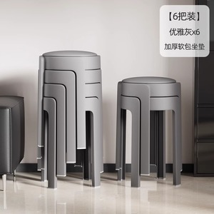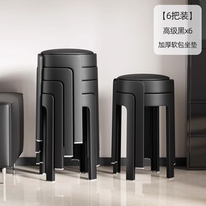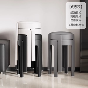 塑料凳子加粗加厚家用可叠放结实耐用旋风圆凳餐桌高椅子软包板凳
