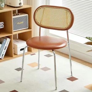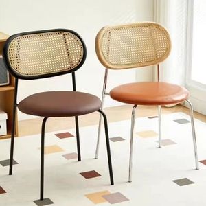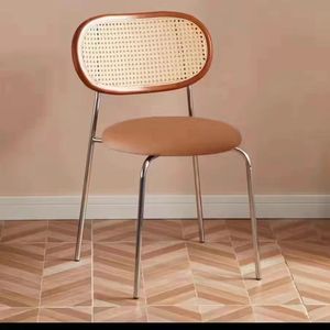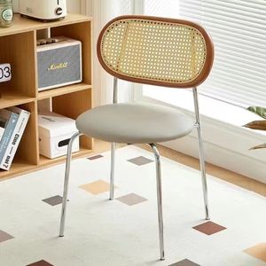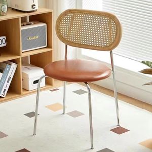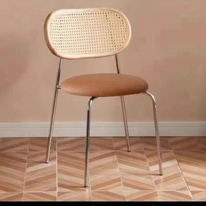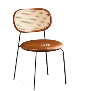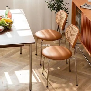 中古藤编椅子网红ins实木餐椅现代简约家用阳台餐厅高档靠背凳子