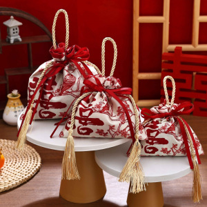 高档喜糖袋喜糖盒子结婚专用高级感糖盒流苏免折叠婚礼手提喜糖袋