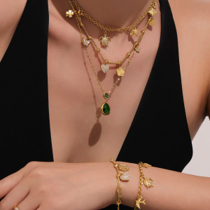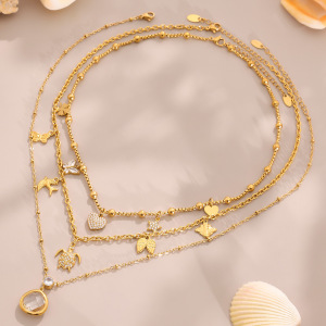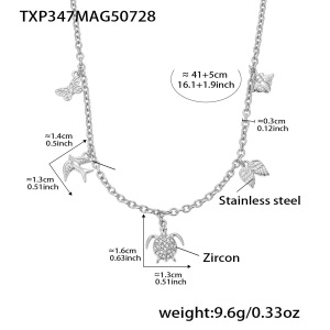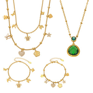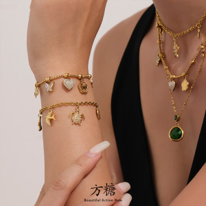方糖不锈钢diy蝴蝶飞鸟项链手链镀18k真金时尚百搭个性首饰套装