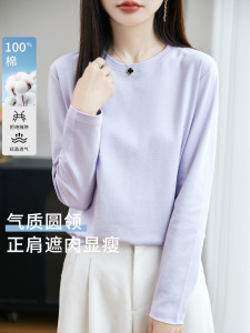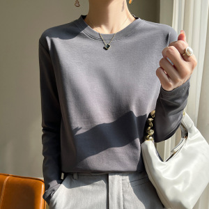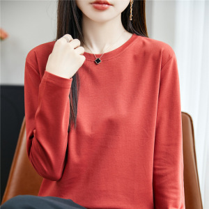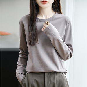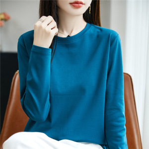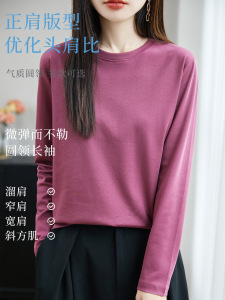 春秋高端品质纯澳棉长袖打底衫圆领显瘦内搭纯色简约大码休闲女装