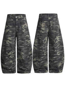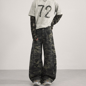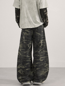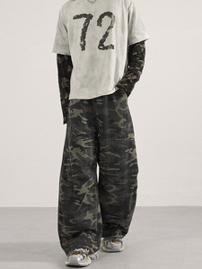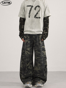 LKTM男装 美式复古嘻哈迷彩弯刀裤男女休闲情侣宽松阔腿休闲长裤