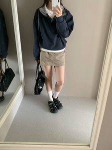 GAGD半拉链分割设计感连帽卫衣女2025秋季新款时尚百搭设计感上衣