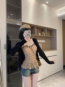 大码早秋法式复古带胸垫纯欲风荷叶边抹胸+防晒开衫两件套