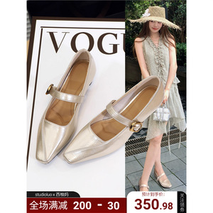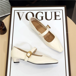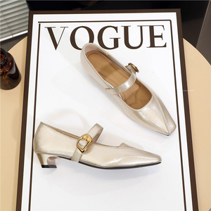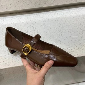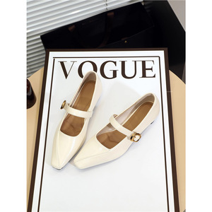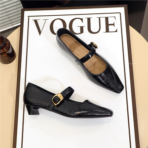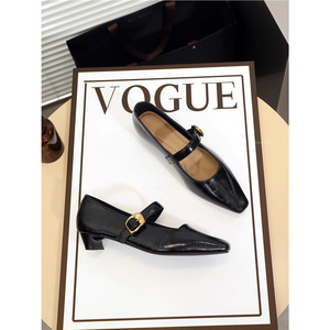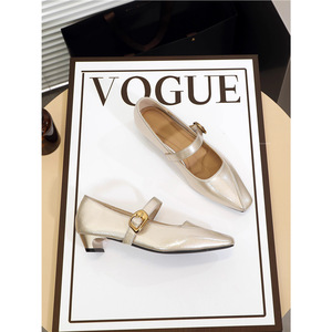 香港一字带方头玛丽珍鞋女2025夏季新款复古风百搭单鞋时尚小皮鞋