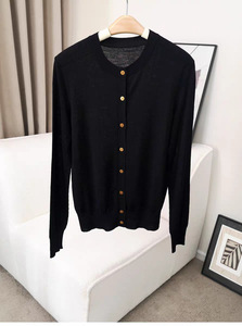 德国扬子纱100%美丽诺羊毛针织圆领开衫精纺60支外套秋冬薄款女25