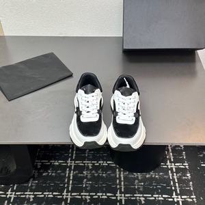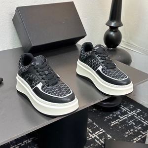 高定 C家小香风老爹鞋女2025新款真皮厚底增高休闲运动鞋女熊猫鞋
