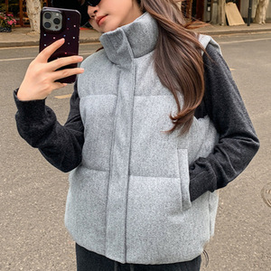 新款灰色坎肩高级感显瘦加厚羽绒棉马甲2025秋季时尚穿搭外穿背心
