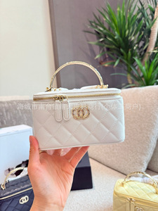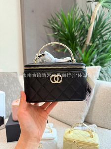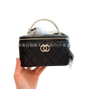 2025新款真皮鱼子酱链条包长盒子高级感化妆手提包真皮斜挎盒子包