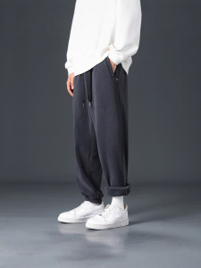 奥粒绒裤子男秋冬季潮流百搭加绒加厚重磅卫裤潮牌束脚休闲裤