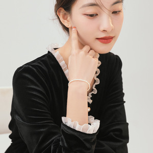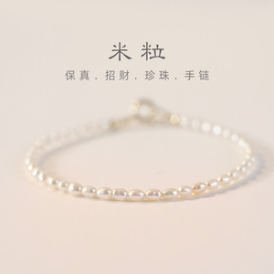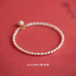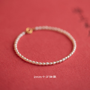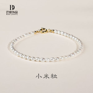 极细天然淡水小米粒小珍珠手链女超细小珠ins小众设计轻奢14k金