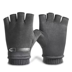 灰色麂皮绒铁扣半指男