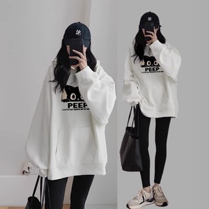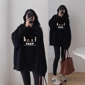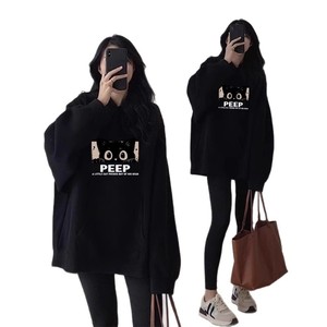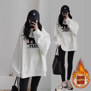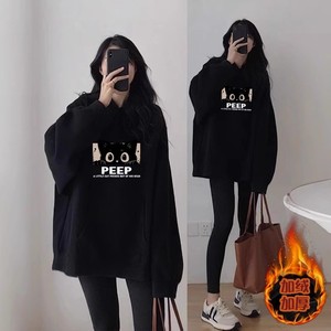 秋冬连帽宽松慵懒风帽衫美式重磅加绒加厚百搭休闲卡通卫衣外套女
