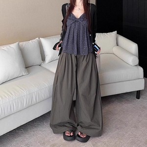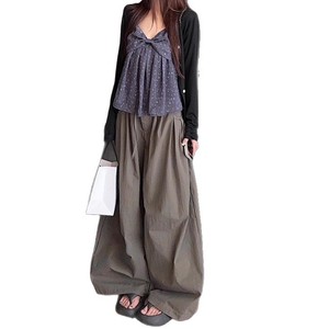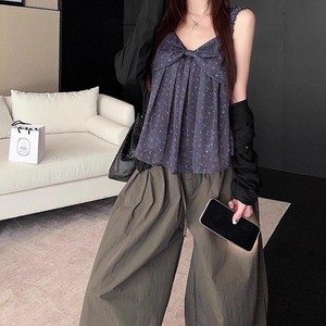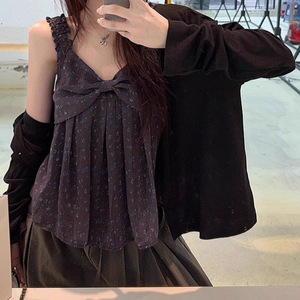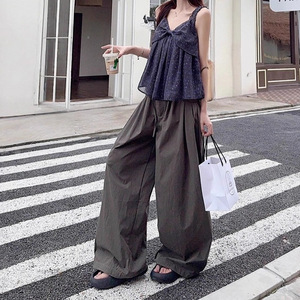 复古蝴蝶结碎花吊带娃娃衫抽绳压褶阔腿休闲长裤2025夏季新款套装