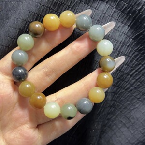 和田玉新疆若羌楼兰三色卡12mm多宝手串圆珠单圈手链直播供货