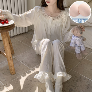 睡衣女2025新款春秋季薄款云朵棉长袖带胸垫甜美公主风家居服套装