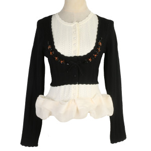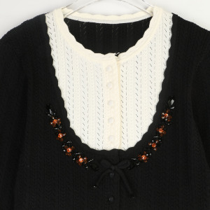 针织开衫假两件镶钻毛衣上衣甜美减龄秋季新款短款长袖针织开衫女