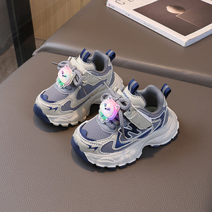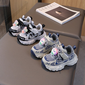 运动鞋2025秋季新款儿童鞋子皮面防水跑步鞋男童黑色小童鞋老爹鞋