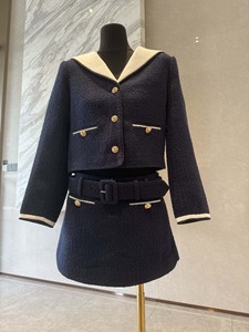 2025年秋季白鹿同款纯色粗花呢撞色V领长袖短款外套低腰裤群套装