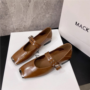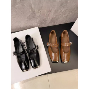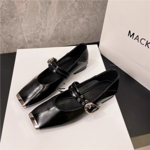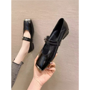 香港平跟方头浅口玛丽珍鞋女2025夏季新款韩版百搭单鞋时尚平底鞋