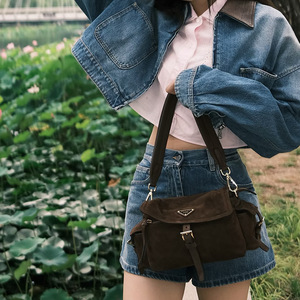 ins网红复古休闲百搭多口袋尼龙机车风单肩腋下包2025秋冬新款女