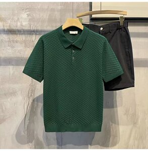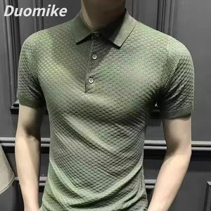 夏季新款欧美修身薄款针织衫短袖商务T恤潮圆领条纹代发