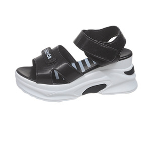 跨境大码厚底坡跟凉鞋女2025夏季新款舒适轻便休闲魔术贴运动凉鞋