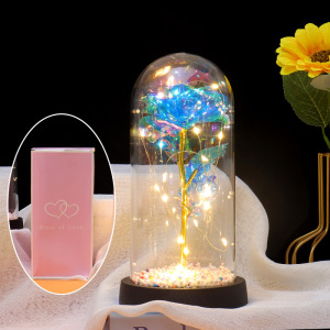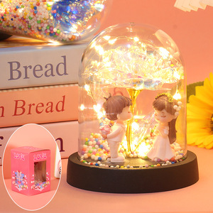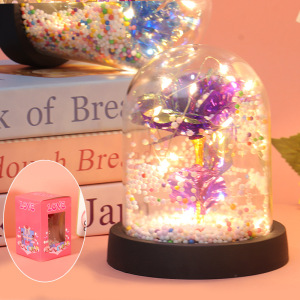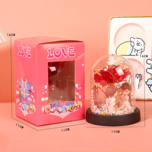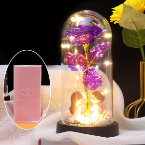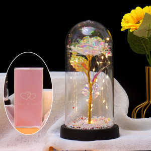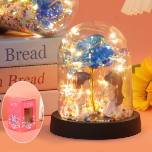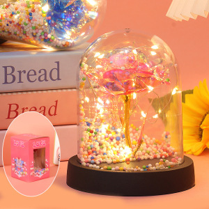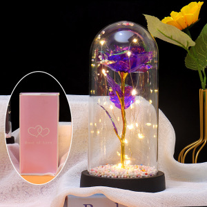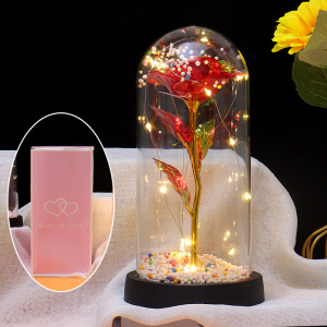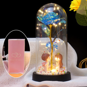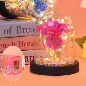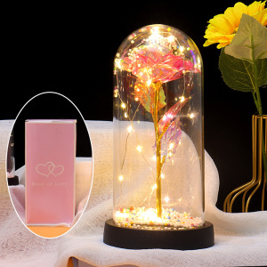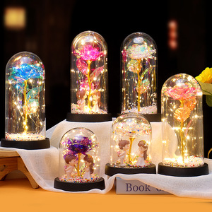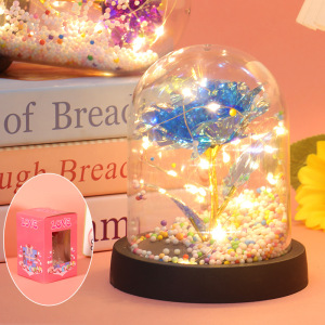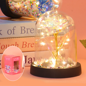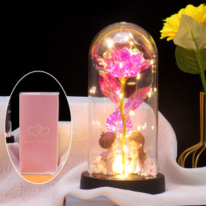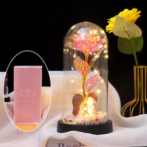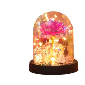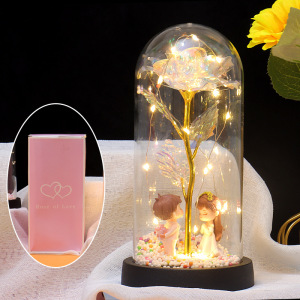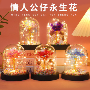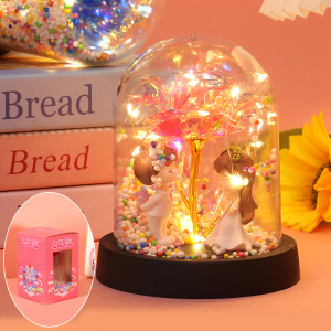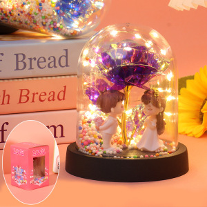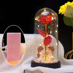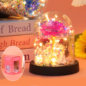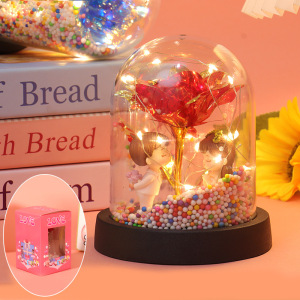 金箔玫瑰花玻璃罩led发光玩偶款永生花七夕情人节圣诞节礼物摆件